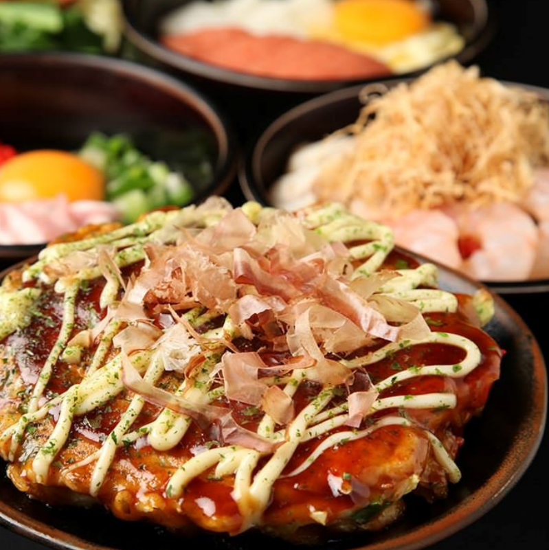 食材にとことんこだわった惚太郎の人気の種類のひとつがこちらのお好み焼き!イカ×エビ×ホタテ×ゲソを使用した贅沢なシーフードと豚肉のMIXお好み焼き♪具材ごとの異なる食感と風味を一度に楽しめて常連様にも大人気☆お酒との相性も良いのでぜひ一度お召し上がりください♪